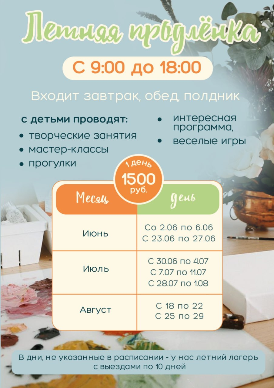 - Гибкий график: возможность выбора удобного времени посещения в течение лета.